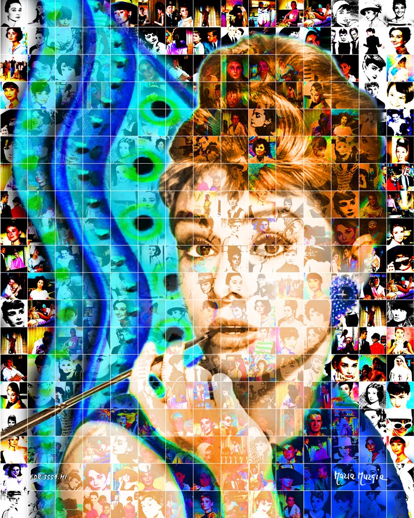 Composizione dedicata ad Audrey Hepburn con sigaretta lunga anni ’20. Ciò che è emerge è il salto logico della percezione, da un mondo intimo ad un mondo più esteriore.