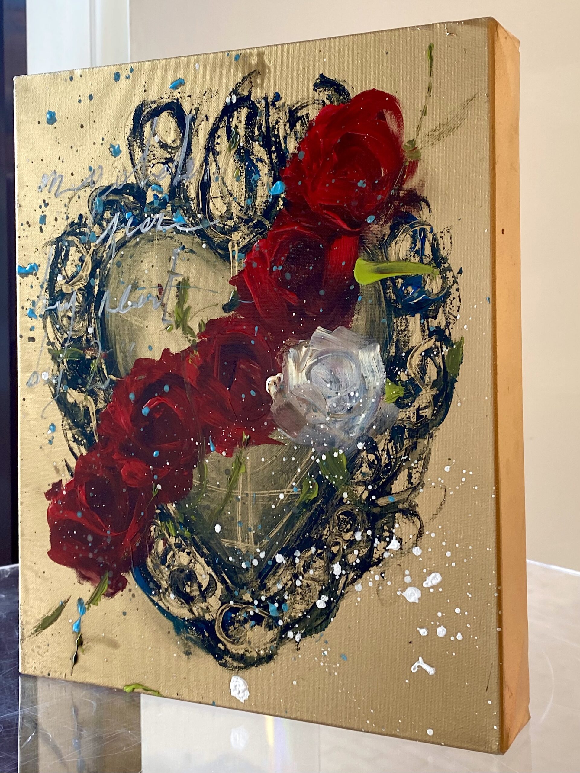 Le rose rosse che avvolgono questo cuore non sono solo decorativi; sono il simbolo del pathos, la rosa bianca invece simboleggia la purezza la bellezza e rinascita.