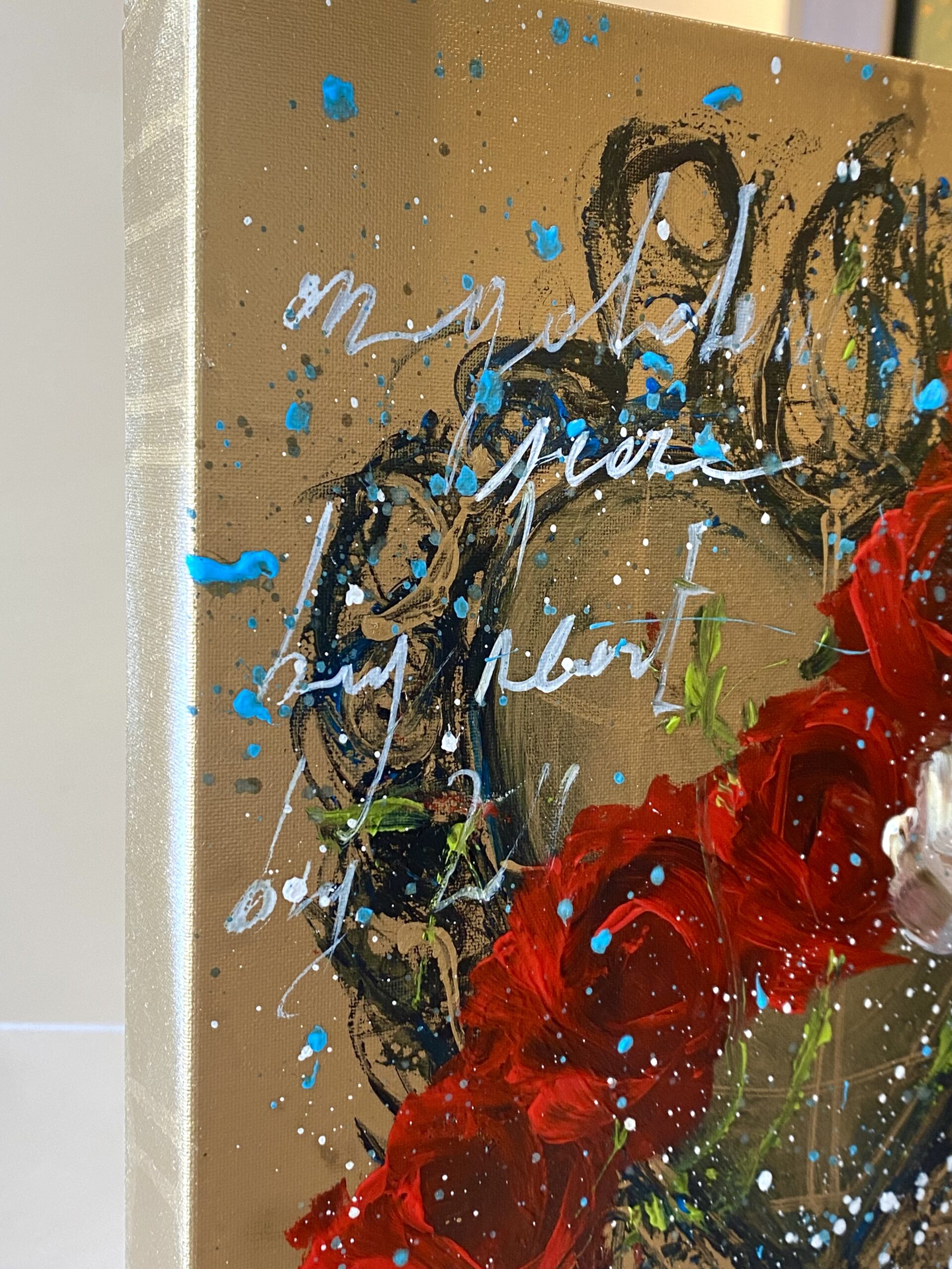Quindi un’evocazione alla meraviglia della vita, ricordandoci che anche nei momenti bui, la bellezza può fiorire. Significativo anche il fondo dell’opera dove un testo scritto ci invita a riflettere.