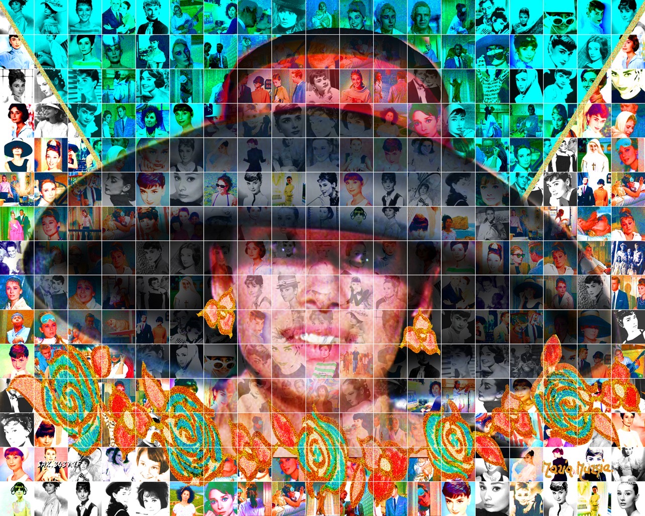 Composizione dedicata ad Audry Hepburn con il suo largo cappello. Ciò che è emerge è il salto logico della percezione, da un mondo intimo ad un mondo più esteriore.