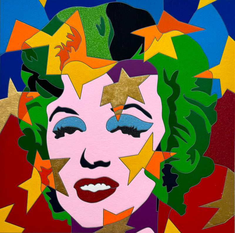 tecnica: serigrafia realizzata interamente a mano con interventi in carborundum, collage, floccaggi, foglia oro e passaggio calcografico a secco, su cartoncino pregiato